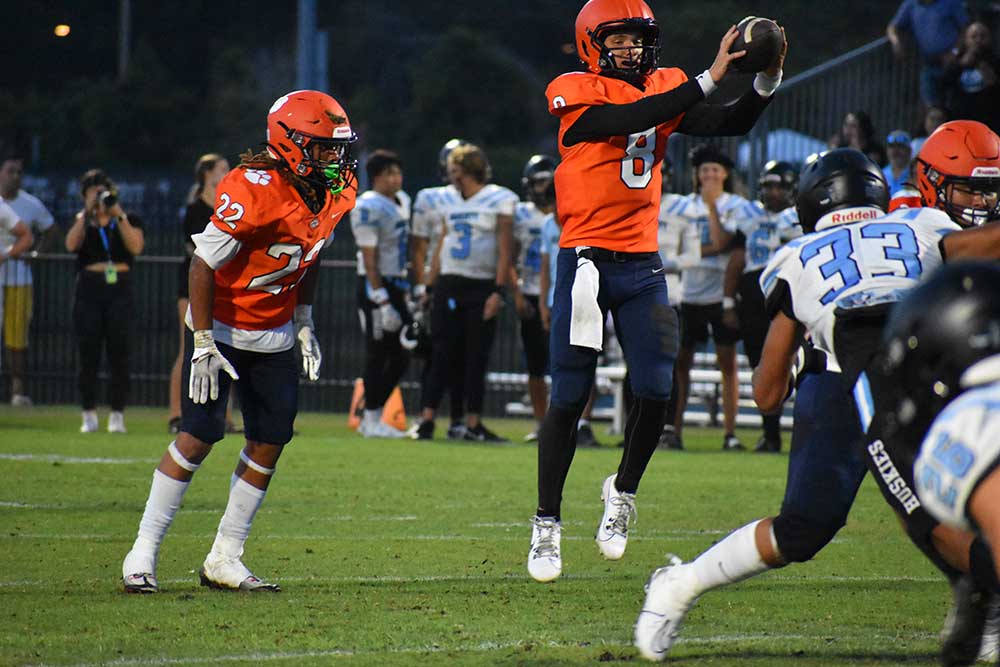 Tohopekaliga is in the process of rebuilding its defensive line after graduating several outstanding players, but is another area where Paradiso believes the Tigers will be okay. “We return Andrew Hines (112 total tackles, 23 TFL and 12 quarterback sacks) who had a great year for us and we have several young players coming up from the junior varsity.” Hines had a solid game in the Hagerty scrimmage recording a couple of sacks and applying some solid pressure throughout the game.