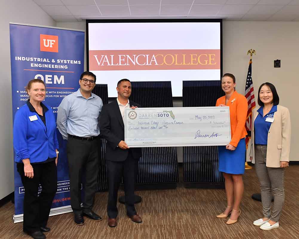 U.S. Rep. Darren Soto visited Valencia College’s Poinciana Campus on Friday to announce $500,000 in federal Community Project Funding for a solar system that will significantly reduce the campus’s utility costs and become an environmental showcase in the Poinciana community. In addition, Valencia College will provide matching funds to support the project.
