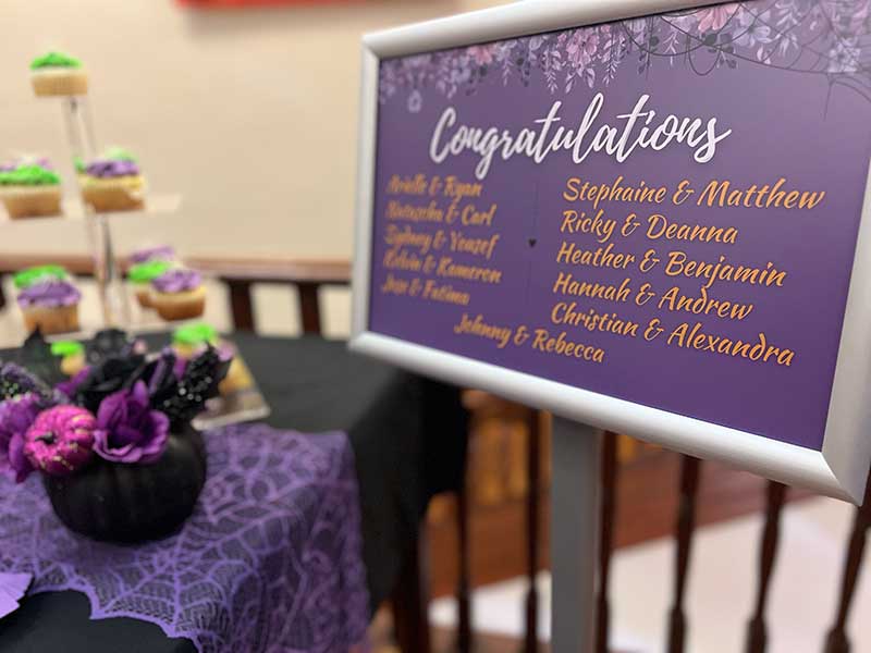 As ten couples pledged “until death do us part” and one couple renewed their lifelong commitment, Halloween-themed music added a touch of magic to the air, creating an enchanting atmosphere for all.