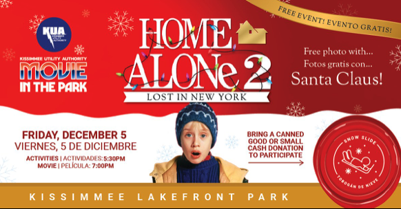 Kissimmee Lakefront ParkKick off the holiday season with a magical night at Movie in the Park! Join us at Kissimmee Lakefront Park on December 5 for a festive screening of Home Alone 2, featuring family-friendly fun, including free crafts, inflatables, a photo booth with Santa, and holiday-themed crafts.To add to the spirit of giving, bring a canned […]