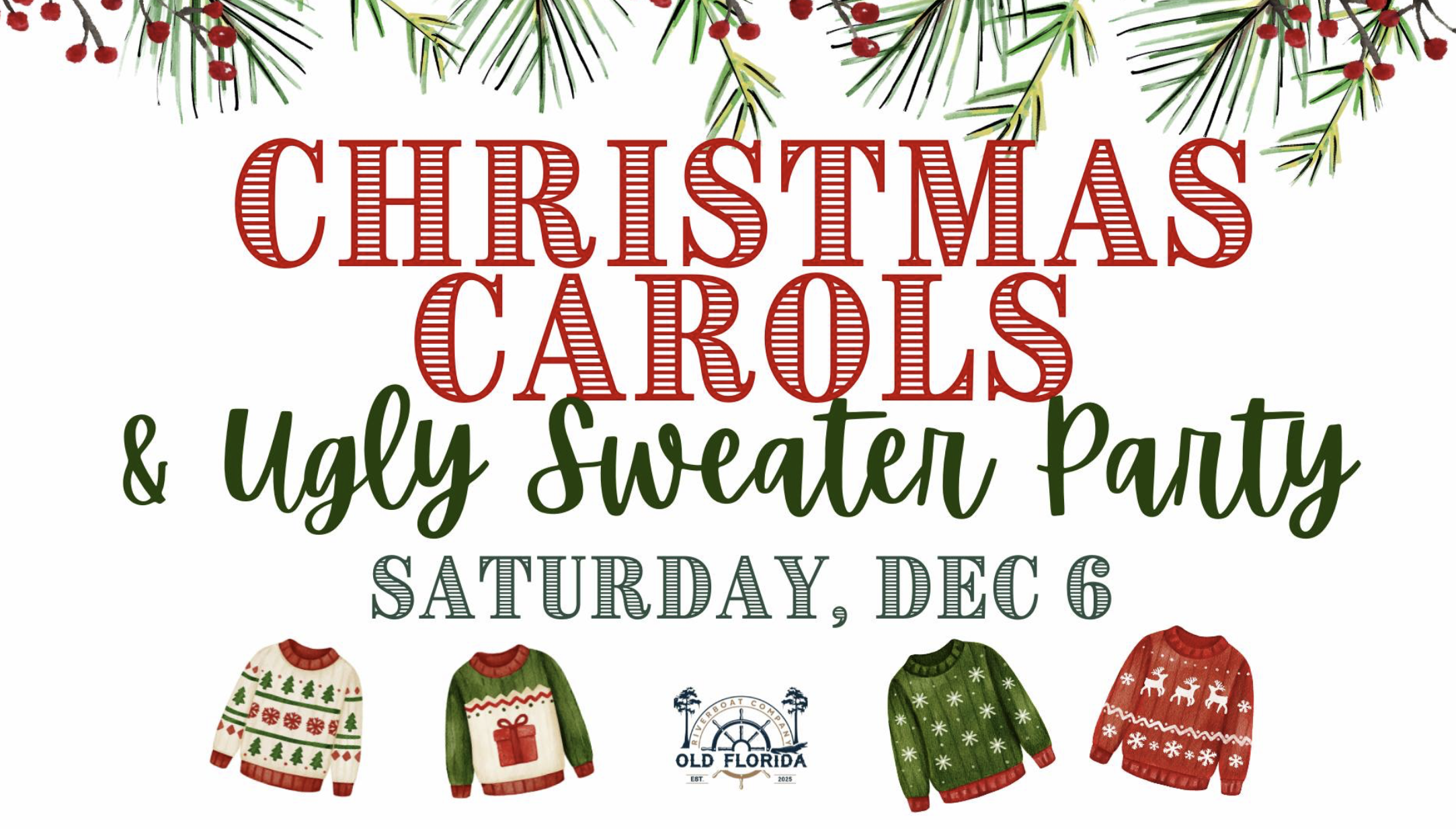 Old Florida Riverboat Company 1402 Lakeshore Drive, St. Cloud, FLGrab your most wonderfully tacky holiday sweater and join us aboard the Lillie for a festive Christmas Carols & Ugly Sweater Cruise! Set sail at 5 p.m. for an evening of merry music, twinkling lights, and plenty of holiday cheer on the water. Sing along to your favorite Christmas carols, show off your ugliest (and […]