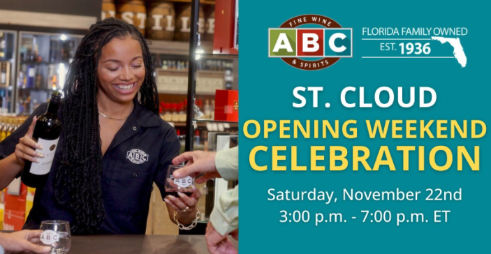 ABC Fine Wine & Spirits 3555 13th Street, St. Cloud, FLRaise a glass, St. Cloud! Your new ABC Fine Wine & Spirits is NOW OPEN. Be the first to experience our brand-new store, wide selection and great service. You're invited to our Opening Weekend Celebration on Saturday, 11/22, from 3 - 7 p.m. EST. Enjoy free samples, a special coupon, a chance to win a […]