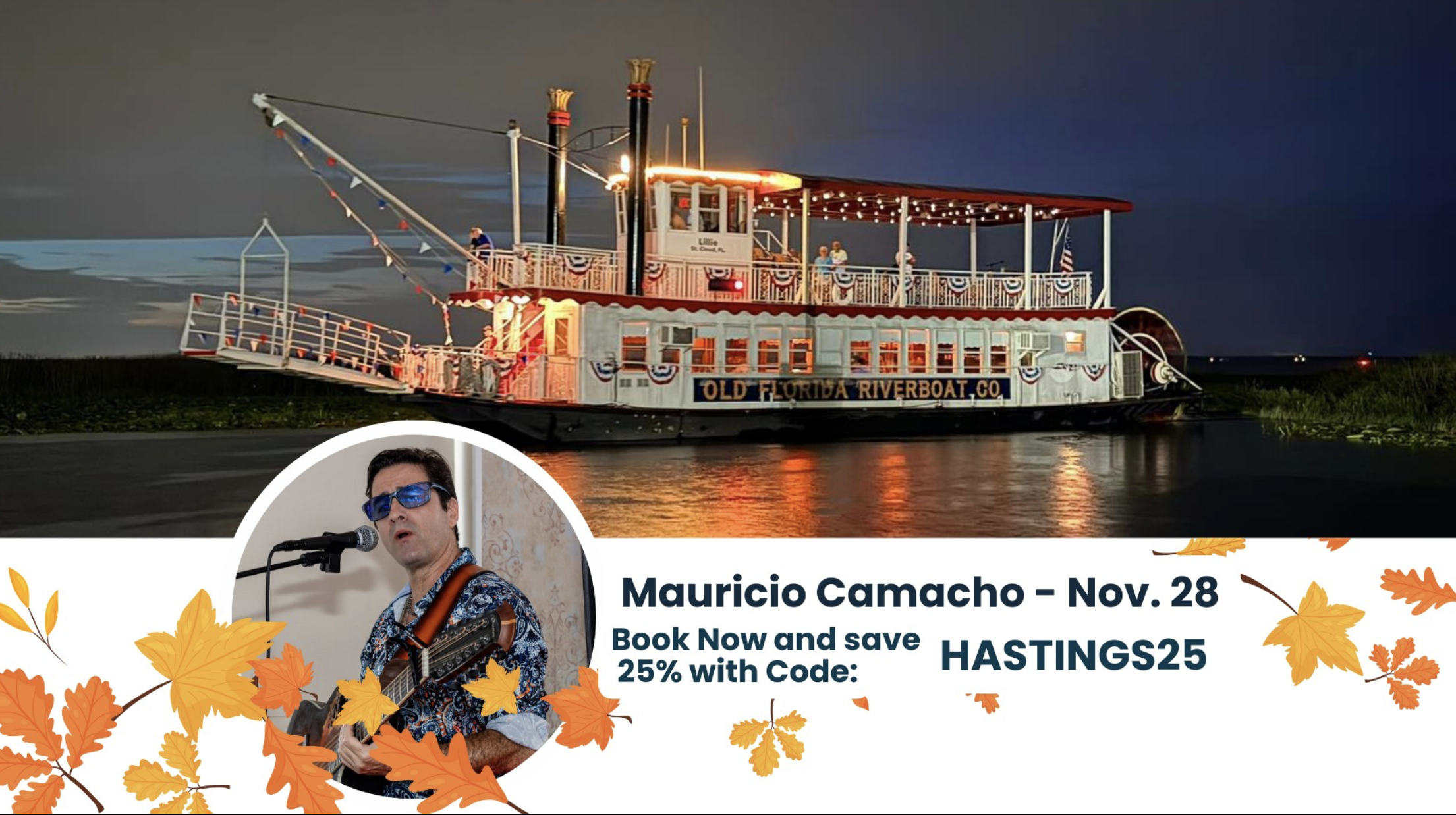 Old Florida Riverboat Company 1402 Lakeshore Drive, St. Cloud, FLHop aboard for an epic adventure on the beautifully restored "Lillie," an authentic sternwheeler named after a historic vessel that operated on the shores of East Lake in the late 1800s.Featuring live music from local artist Mauricio Camacho. The Lillie has a full bar, but don't you worry, plenty of nonalcoholic options on board as […]