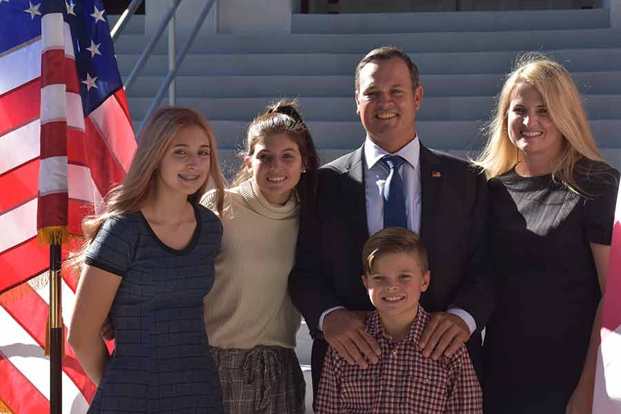 His wife, Erika and his three children Nellie, Natalie, and Thomas participated in the ceremony. Among the numerous members of his family were his parents, longtime educators Tom and Martha Booth.