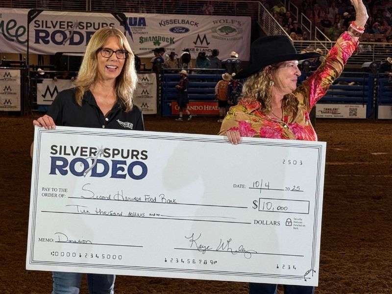 During the performance, the Silver Spurs Club presented a $10,000 donation to Second Harvest Food Bank of Central Florida, a contribution that will help feed thousands of families across the region. The check presentation underscored the Club’s commitment to serving the community beyond the arena dirt — proving once again that the Silver Spurs Rodeo isn’t just about competition, but compassion and community impact.